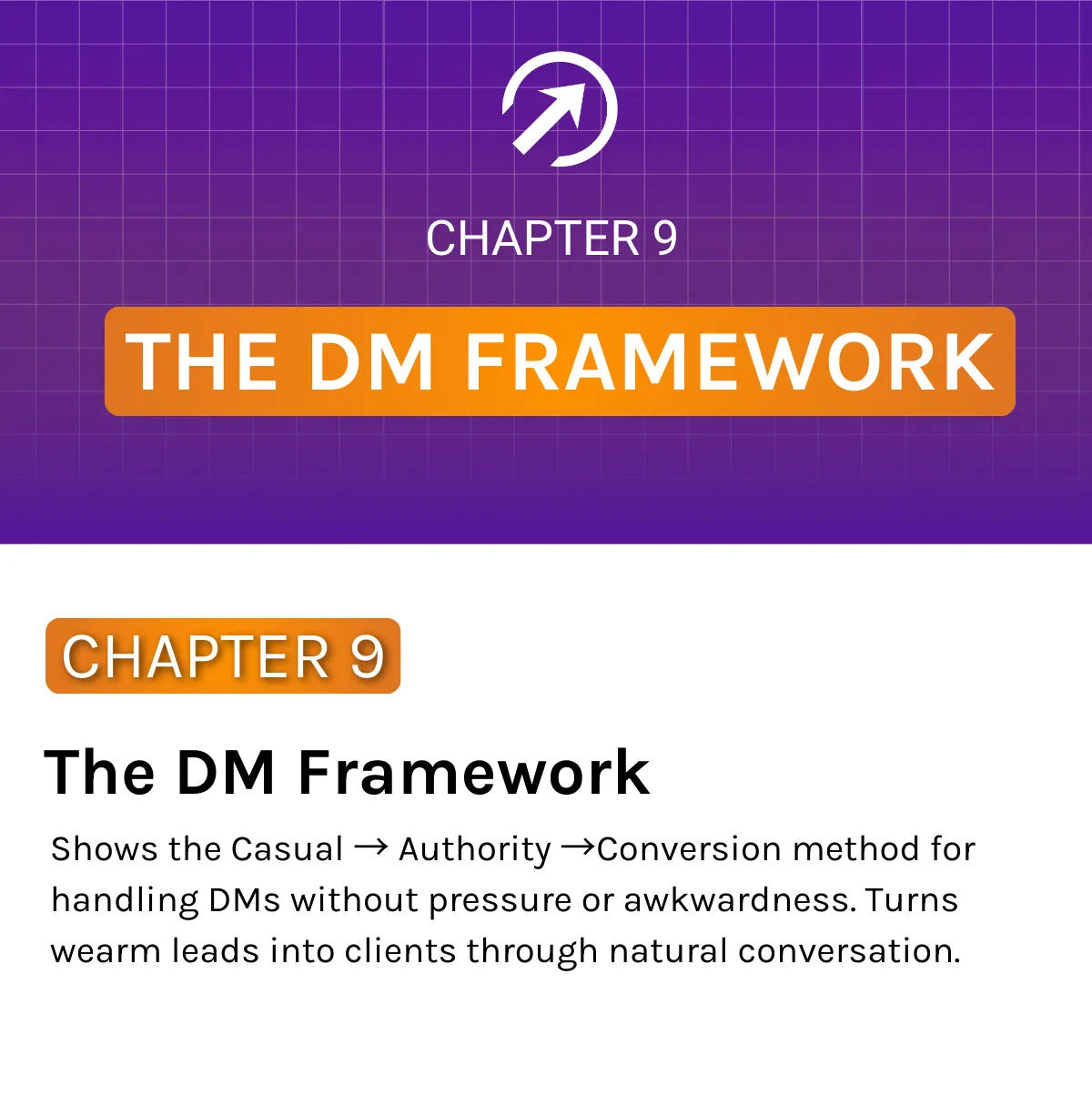 Most sales are lost in the DMs. This chapter installs a simple Casual to Authority to Conversion framework that keeps conversations natural while guiding prospects toward the next step.