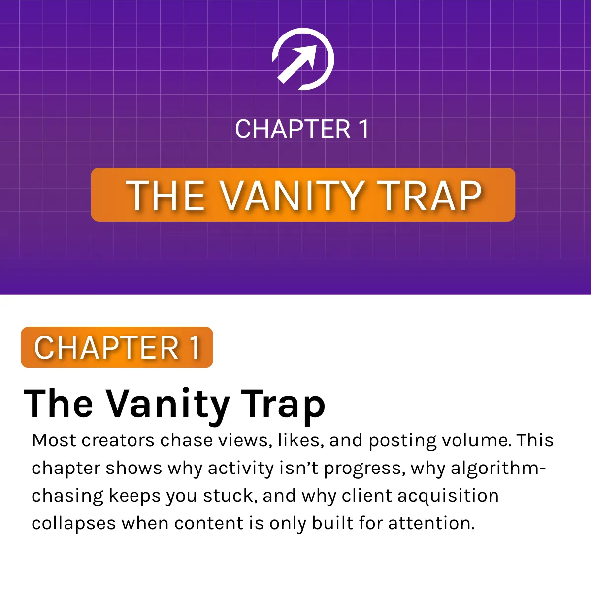 Why likes, views, and followers create the illusion of progress while your business stays stuck. This chapter breaks down why activity is not the same as results, and how chasing the algorithm quietly kills client acquisition.