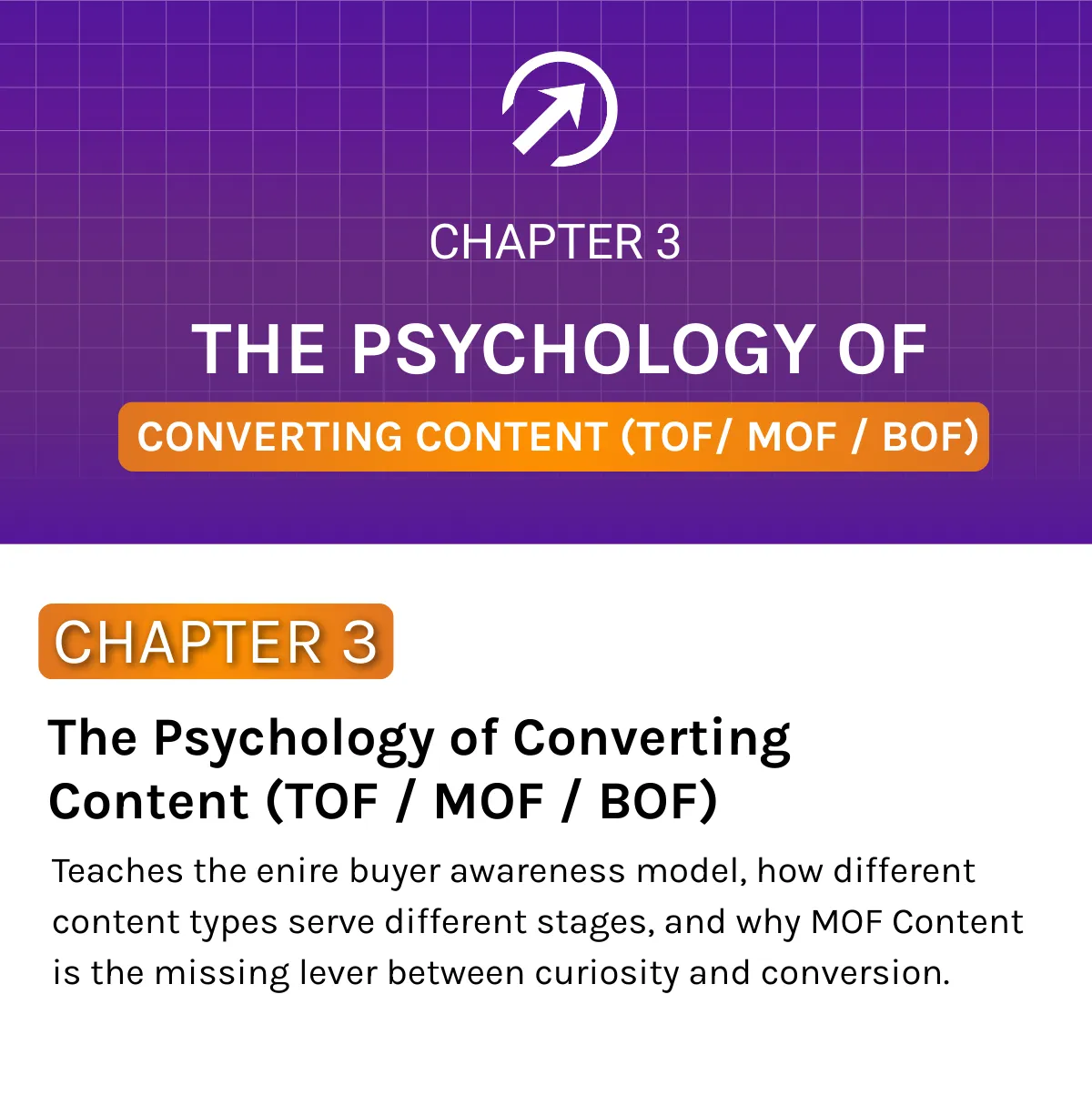 Different content types serve different purposes. This chapter shows how top, middle, and bottom of funnel content works psychologically, and why most creators miss the stage where real money is made.