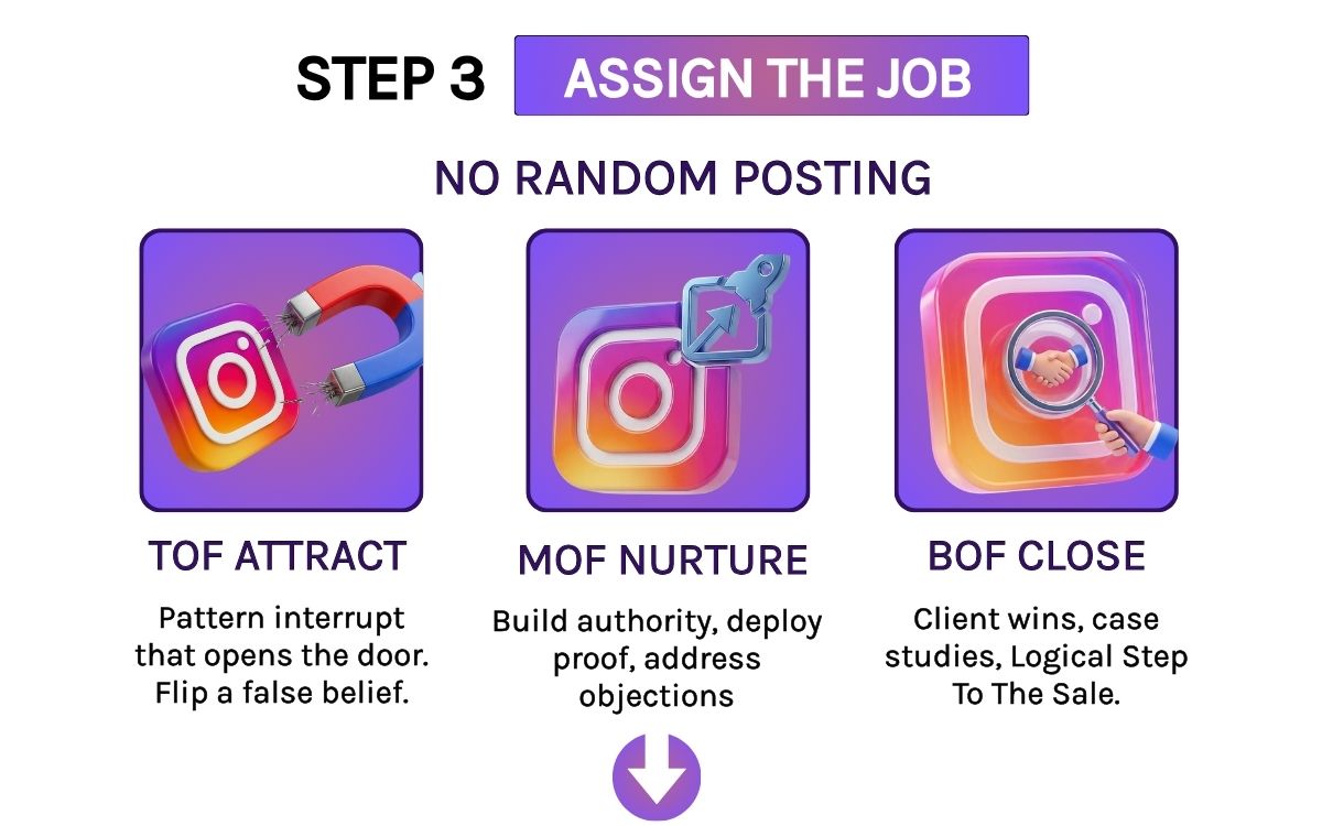 It becomes something that happens by design—because your posts are pre-wired to move people TOF → MOF → BOF, your proof bank builds trust, and your SOPs/GPTs remove creative block.