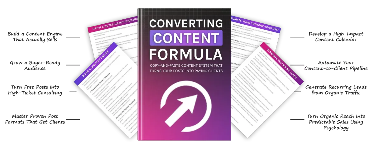 Implementation beats information. A clear, practical plan to apply the entire Converting Content Formula over the next week so momentum starts immediately instead of staying theoretical.