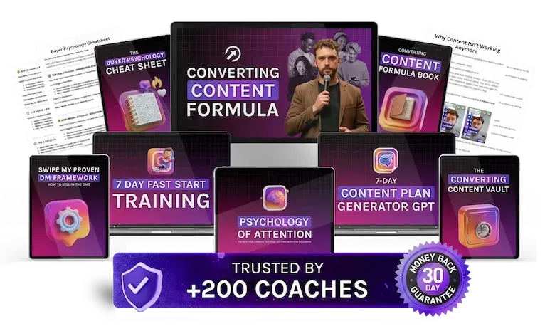 A 71-page book plus video training that teaches you how to map your content to buyer psychology. You also get the 7-Day Content Plan Generator GPT, the Buyer Psychology Cheat Sheet, the Converting Content Vault (proven examples), and a 7 Day Fast Start Training To Help You Implement Fast.